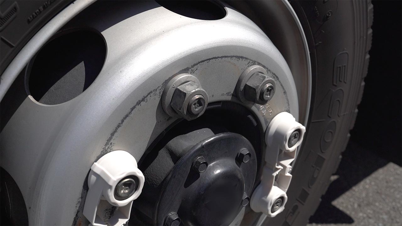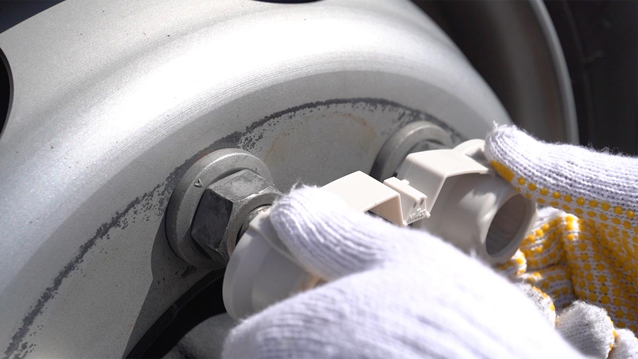 利富高的轮毂螺母指示器WaOSaFe™是一款可以轻松判断大型卡车和公交车轮毂螺母松动情况的产品。安装后如果箭头部分移动并离开判定区域,即可一目了然地确认发生了螺母的松动。无需依赖经验即可快速且准确地进行检查。安装时只需较小的力即可轻松完成,形状设计避免正反装错,提高了作业效率。其同心圆状的设计与轮毂融为一体,对外观没有影响。此外,覆盖螺母的结构可以防止水和泥的进入,同时通过开口部位也能检查螺栓是否锈蚀,是兼顾安全性和耐久性的日常检查新常识。